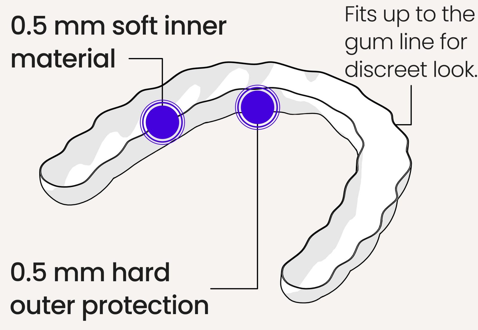 Our soft night guard for teeth grinding is crafted from high-quality, BPA-free materials. The clear, soft rubber is phthalate-free, ensuring both safety and comfort.